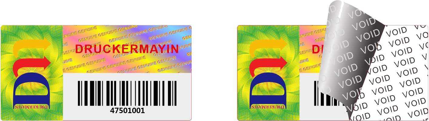 Secured by “DRUCKERMAYIN” 3D Hologram with unique (Code128)