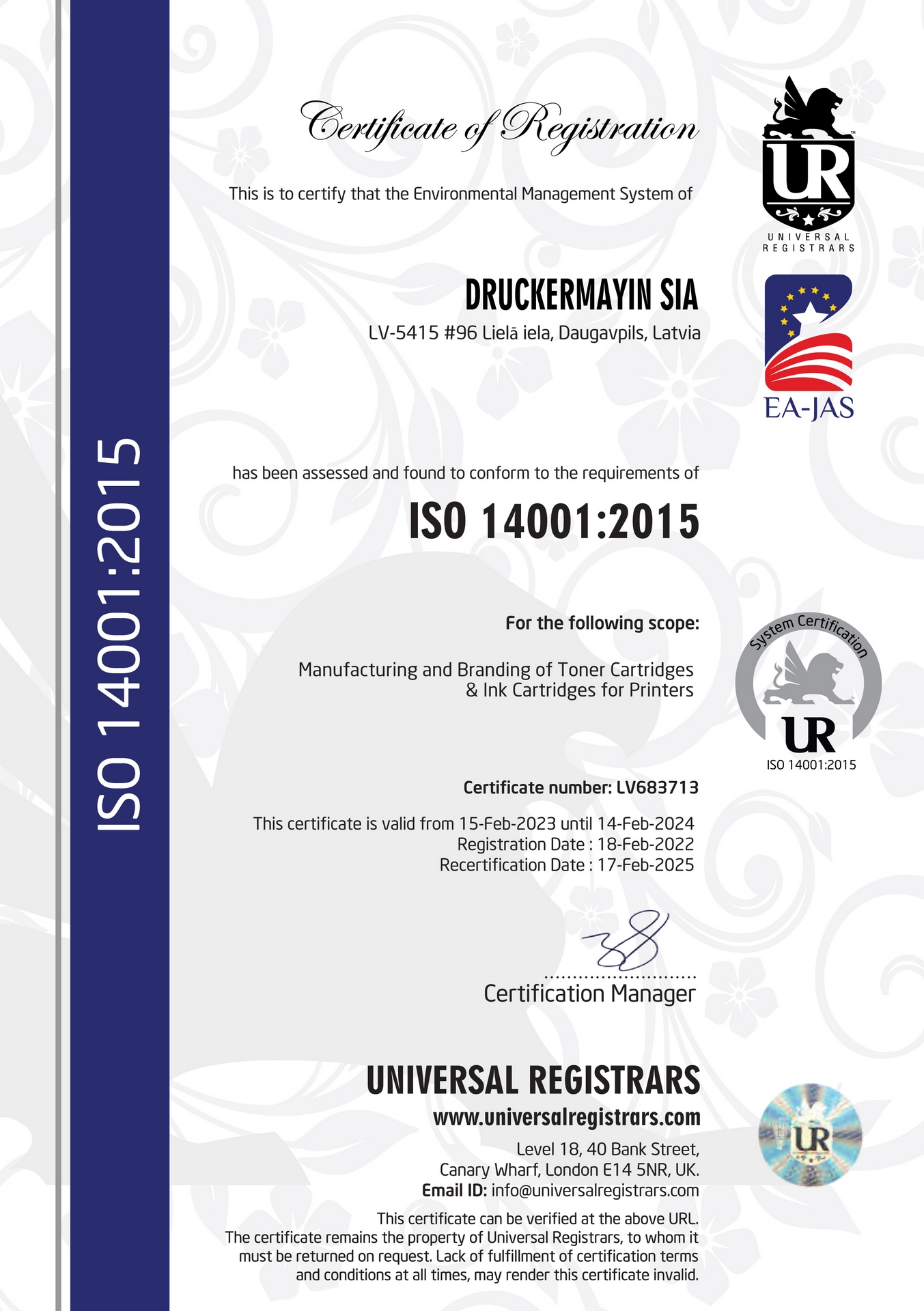 Assigned in Production of Toner Cartridges for Marking each product with GS1 GTIN Number.